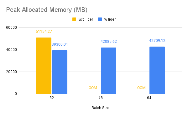 The Liger fused CE kernel is highly effective in this scenario, eliminating the need to materialize logits for each head, which usually consumes a large volume of memory due to the extensive vocabulary size (e.g., for LLaMA-3, the vocabulary size is 128k).